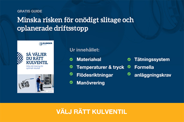 Läs mer om vad du bör tänka på i vår guide ”Så väljer du rätt kulventil” som tar upp allt från materialval och montering till manövrering och driftsäkerhet.