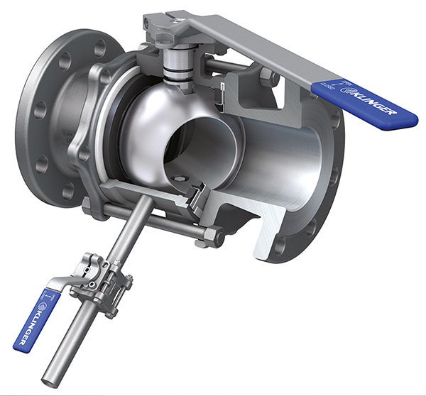 Hos KLINGER Ballostar KHA, i motsats till konventionella kulventiler, begränsas inte absorptionsytan för medietrycket till kulan, utan det omfattar hela tätningselementet