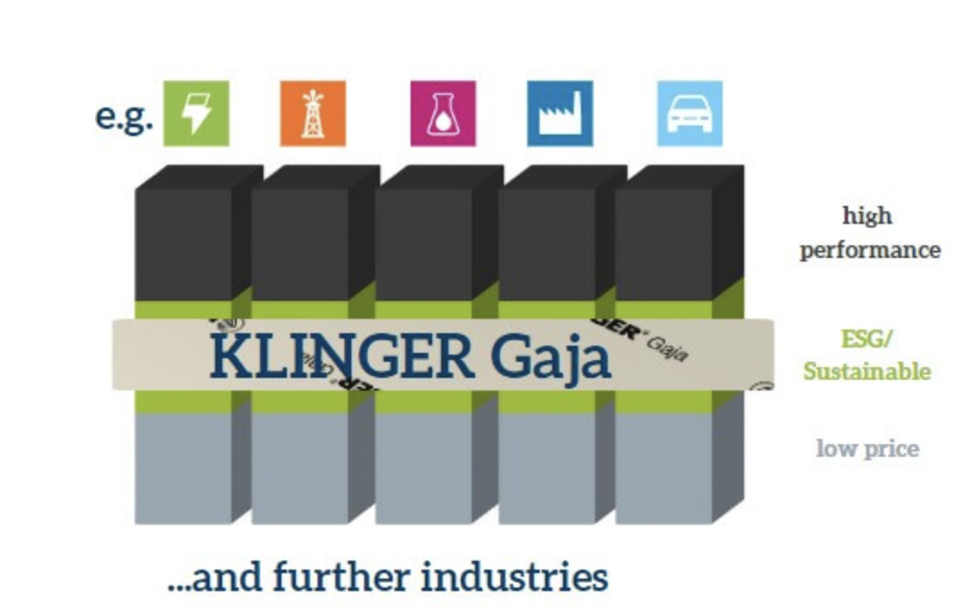 KLINGER Gaja utvecklades inte för en specifik industri, utan täcker ett brett spektrum av applikationer över många industrier. Det är särskilt intressant för företag som prioriterar ESG och hållbarhet. Tack vare sina tekniska och miljövänliga egenskaper och effektivitet är KLINGER Gaja lämplig för en rad olika industrier, inklusive kemikalier, olja och gas, energi, bilindustri och många fler.