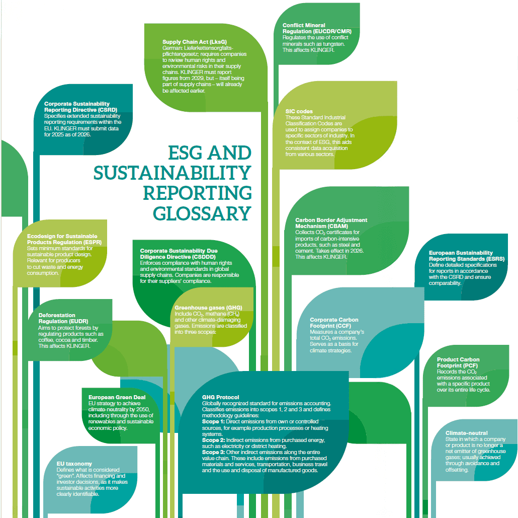 >> Corporate Sustainability Reporting Directive (CSRD): Anger utökade krav på hållbarhetsrapportering inom EU. KLINGER måste rapportera data för 2025 från och med 2026.