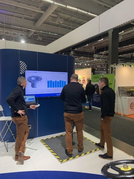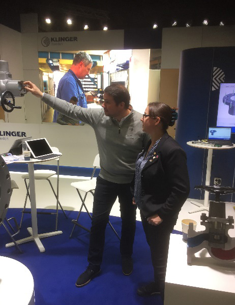 Under mässan presenterade vi vår Klinger FIT-applikation från Klinger Dichtungstechnik – En utrustning som simulerar en planpackningsinstallation. Man kan då se vad som händer med packningen via diagram kopplat till bultarna för att förhindra en felinstallation.