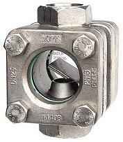 Synglas, flödesindikator med invändig gänga för installation i rörledning,
