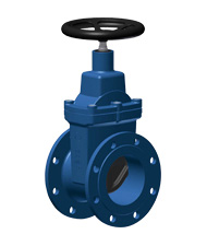 Hus med bultad överdel, med flänsar, tryckklass DIN/EN PN10-16, bygglängd enligt EN558-1 serie 14, med handratt, för dricksvatten DVGW-KTW eller för avloppsvatten etc. CE-märkt enligt 97/23/EG (PED)