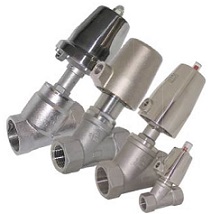 Beskrivning snedsätesventil med pneumatiskt manöverdon, enkelverkande eller dubbelverkande, normalt stängd eller öppen